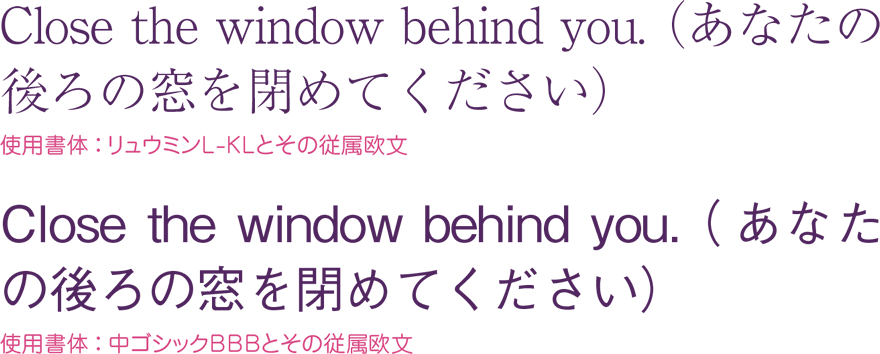 次の文中の欧文書体は、それぞれリュウミンL-KLの従属欧文と中ゴシックBBBの従属欧文である。