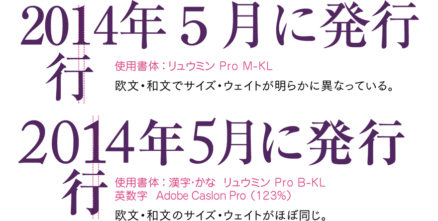 和欧混植の場合、適切な書体を選ぶポイントは、「漢字」と「かな」の組み合わせと考え方は同じだ。つまり和文書体と同じウェイトの書体を選ぶことが大前提となり、次に位置やサイズを調整する必要がある。そのためには欧文書体の英数字、記号についての理解を深めることが必要だ。