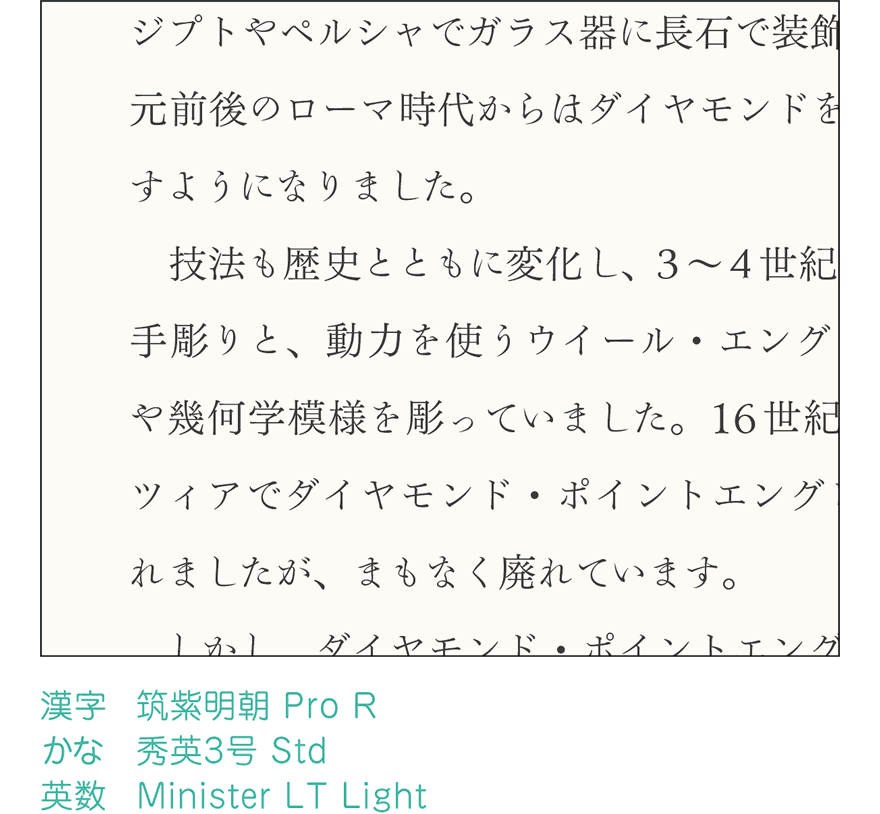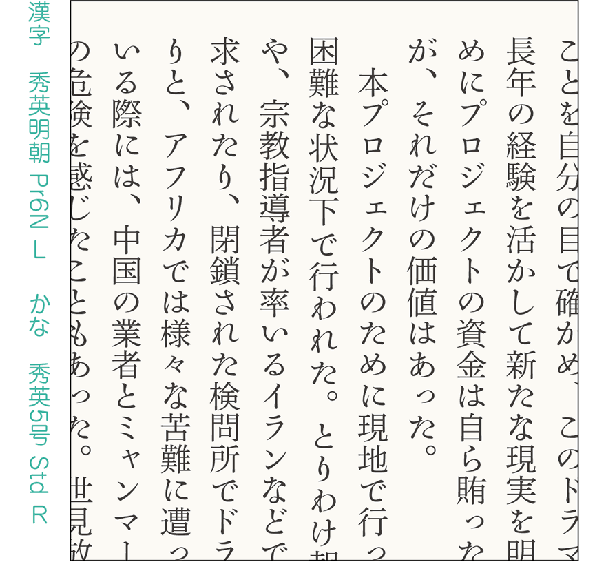 本文 : A-OTF 秀英明朝 L (モリサワ) 14pt 行送り25pt
