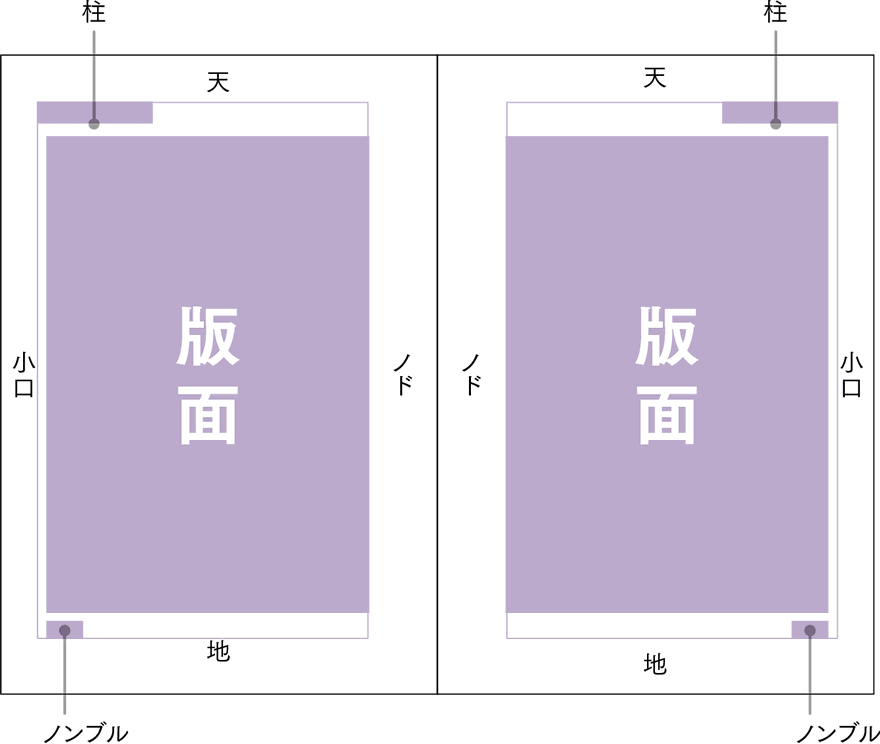 版面(はんづら)とは、柱やノンブルを除いた本文レイアウト部分を指すのが一般的だ。レイアウトの基本的な枠組みであり、ページレイアウトはこの版面の設定を決めることから始まる。