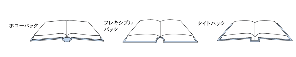上製本には背の形状の違いから角背製本と丸背製本の2つのタイプがあり、さらにフレキシブルバック、タイトバック、ホローバックの3種類にわけることができる。