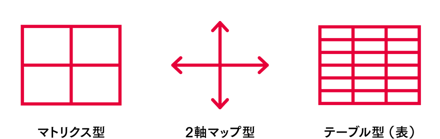 競合製品・サービスとの比較、会社のポジション、各種項目の比較などに適しています。