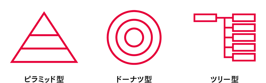 上下関係や、台風の影響のように中心から外側に向かってレベルの違いを表現したい場合に適しています。
