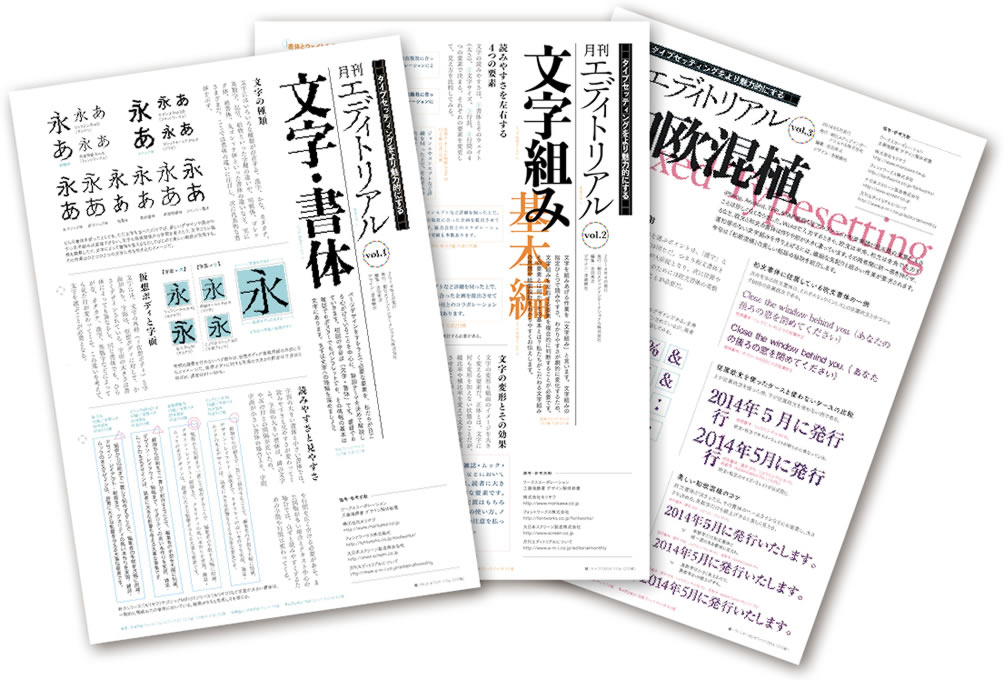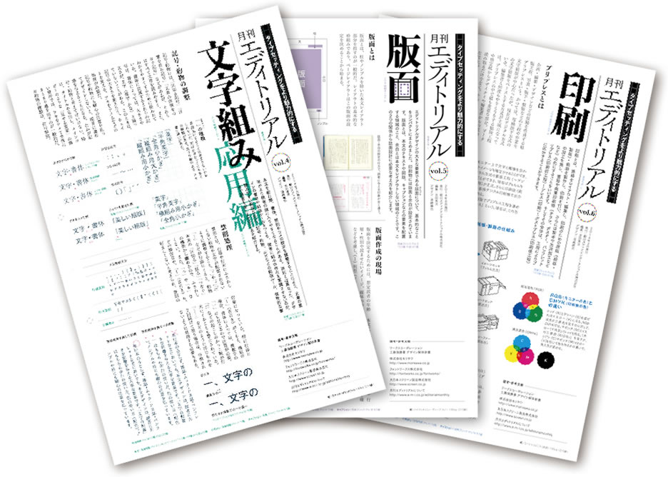 朝日メディアインターナショナル株式会社が発行する専門情報紙。ページ制作をするうえで重要な要素を文字にまつわることを中心に毎回テーマを決めて詳しく解説します。 美しい組版・エディトリアルデザインには、紙面を魅力的にするためのテクニックやスキル、鋭い感覚が必要です。そのすべてをこの「月刊エディトリアル」として出版・デザインに携わる皆様にお届けいたします。