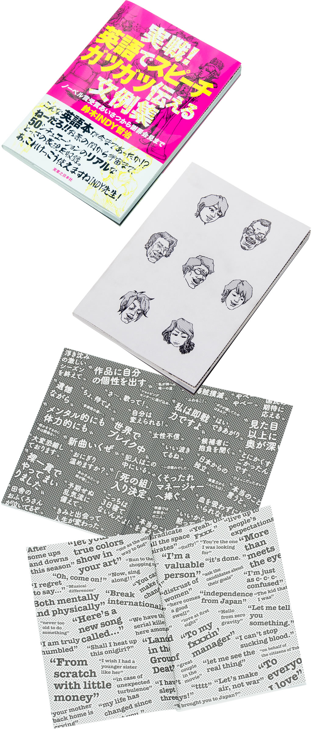 様々なシチュエーションにおけるリアルなとっさの表現を収録した本。コメディタッチの英語のやりとりのフレーズ文例集。装丁、本文デザインはイラストレーター西井佑助氏の線画イラストを使用しキャラクターと英語を話すシチュエーションを演出。