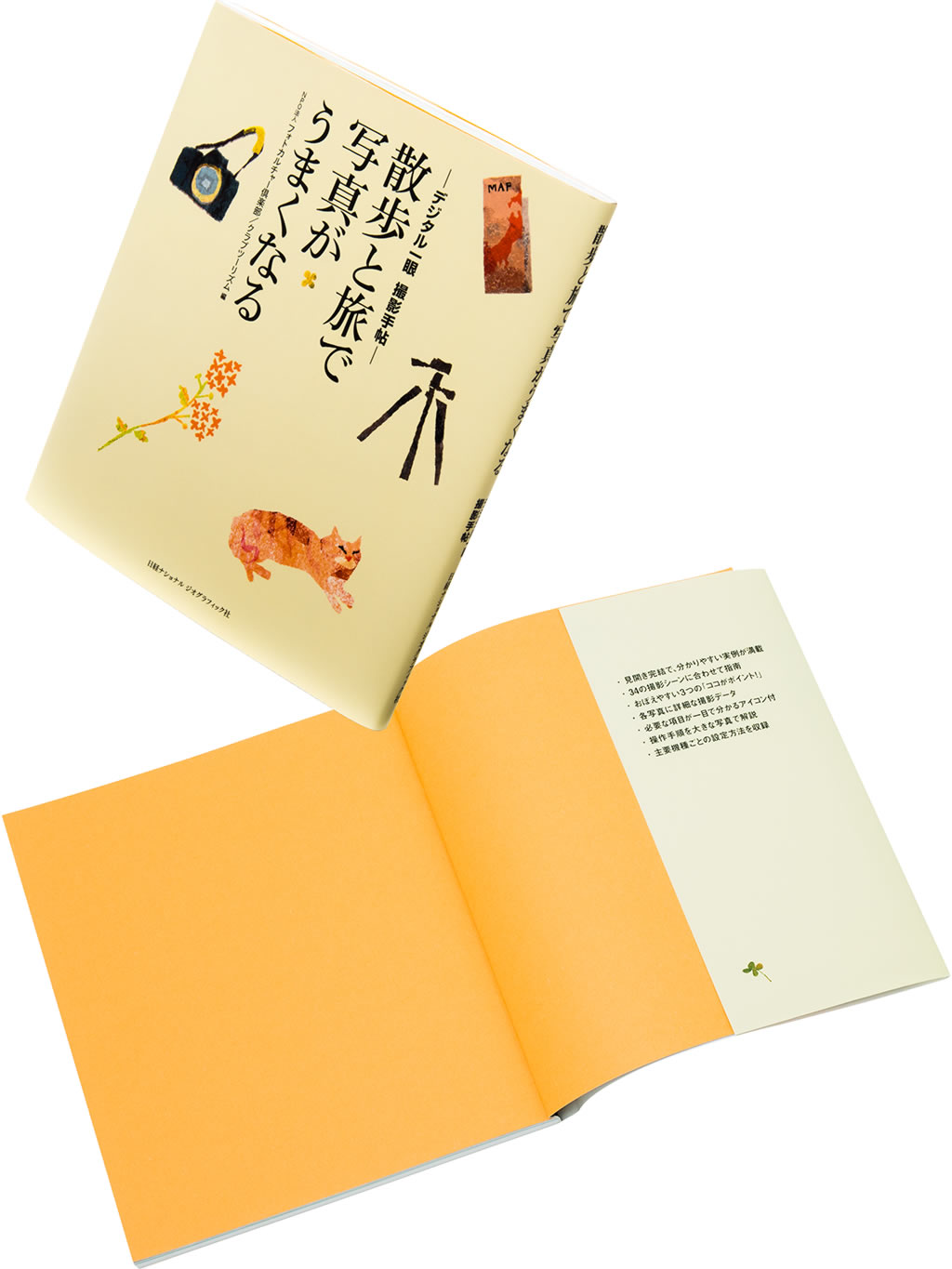 ナショナルジオグラフィック社出版のカメラ撮影教則本の装丁・フォーマットデザイン。カメラの機能の説明や撮影の手法などを写真、図版で説明する書籍のページレイアウトなどのエディトリアルデザイン。