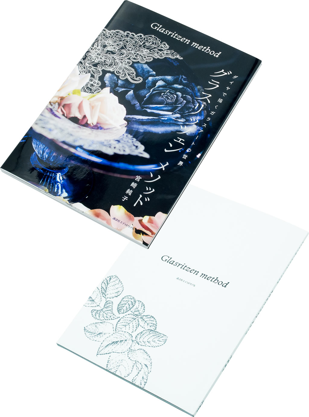 ガラスにイラストを描く、「グラスリッツェン」と呼ばれるアート作品と、その制作方法が掲載されたビジュアル本のブックデザイン。高級感・重厚感が出るよう、カバーに銀の箔押しを施し、ガラス上に描かれる線画も併せて表現した。