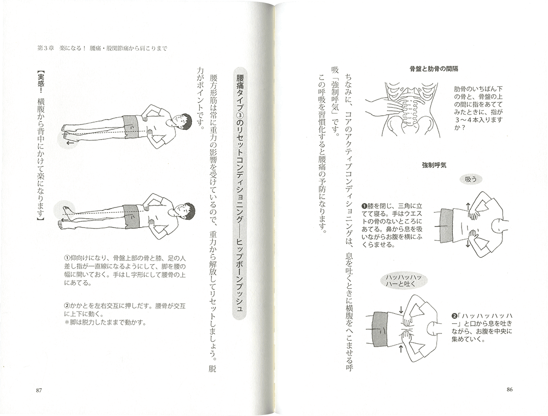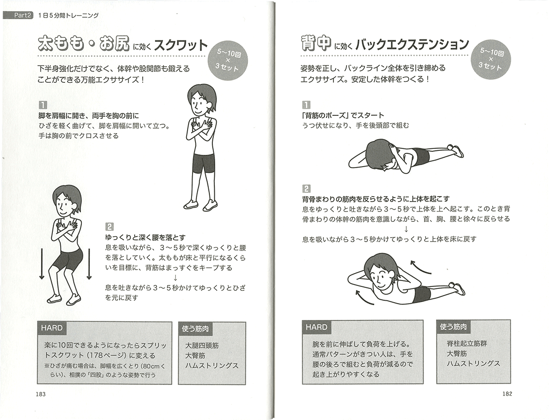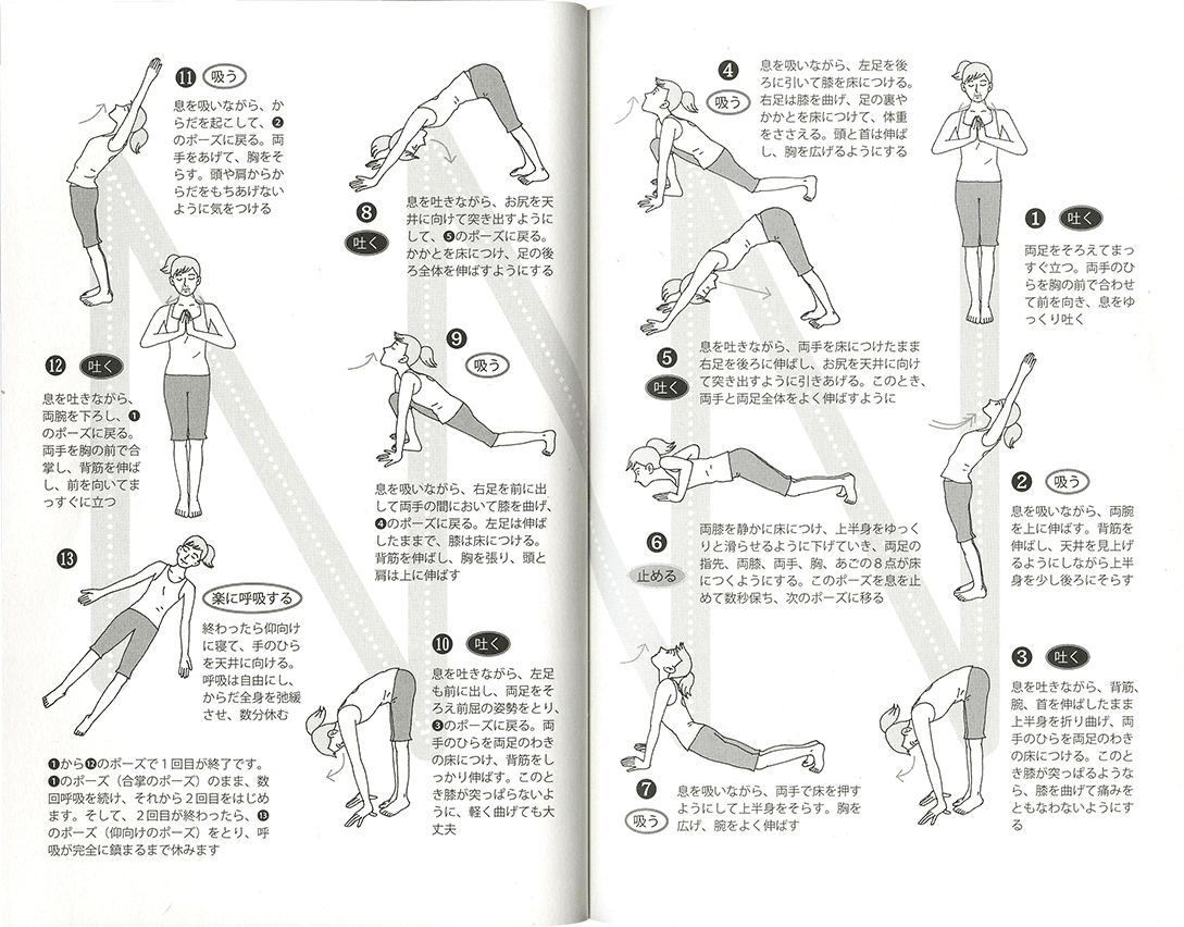 エクササイズを説明の為に表現した女性の身体全体の動きのイラスト