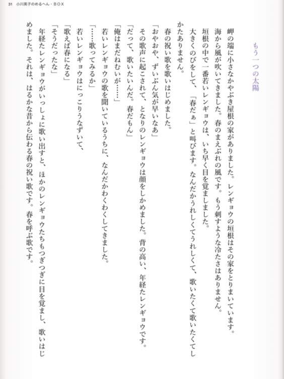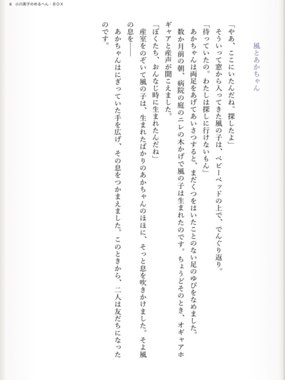 『小川英子のめるへん・BOX』は、講談社児童文学新人賞をはじめ、カネボウ・ミセス童話大賞優秀賞、児童文学ファンタジー大賞奨励賞を受賞している著者の短編集です。