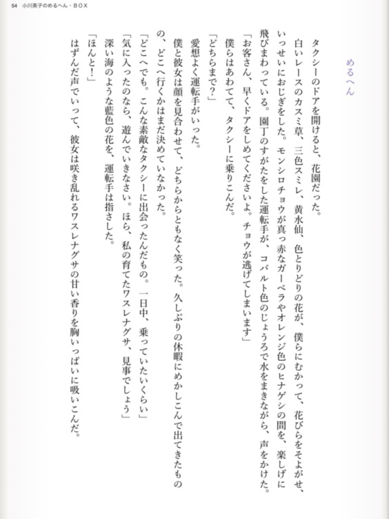 このシリーズの第一箱「やさしいバイオレットの小箱をどうぞ」には、スミレの花をイメージして、ユーモアと希望を紡ぐ物語を五篇集めました。
